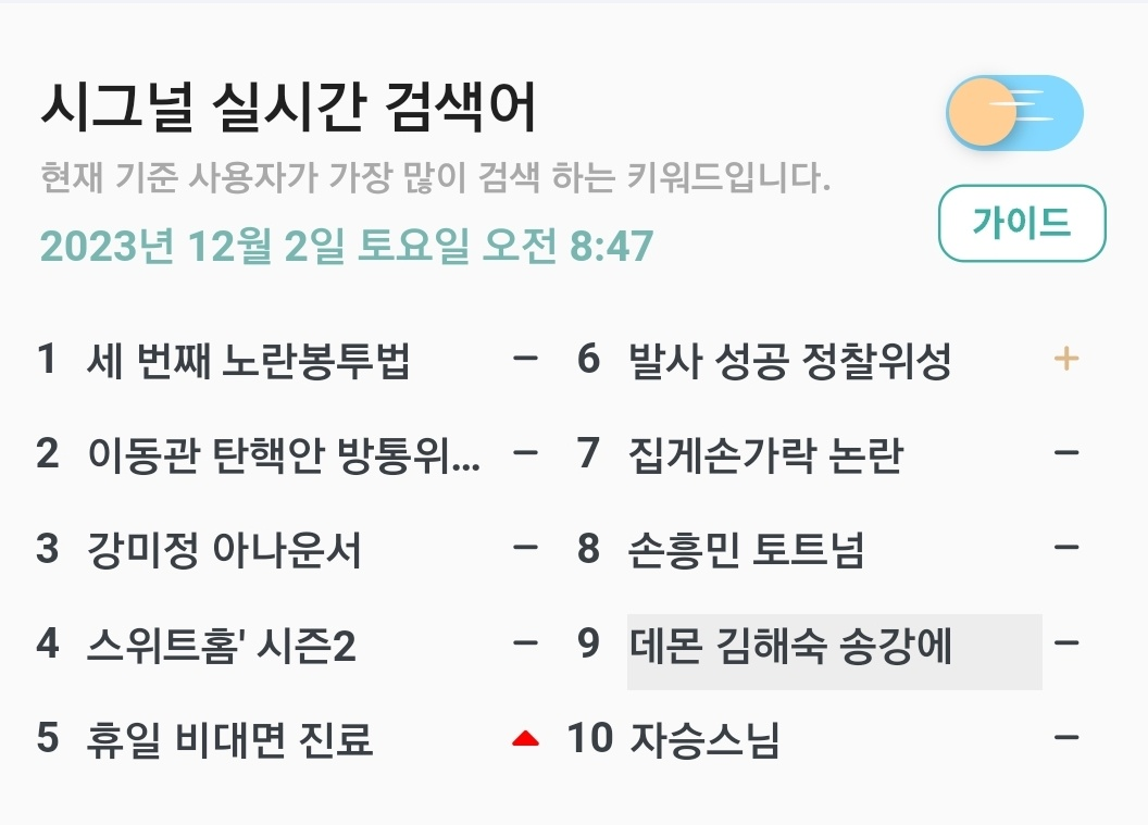 | [23년12월03일] 09시 실시간검색어 추이 분석 (1) | 2023.12.03 |