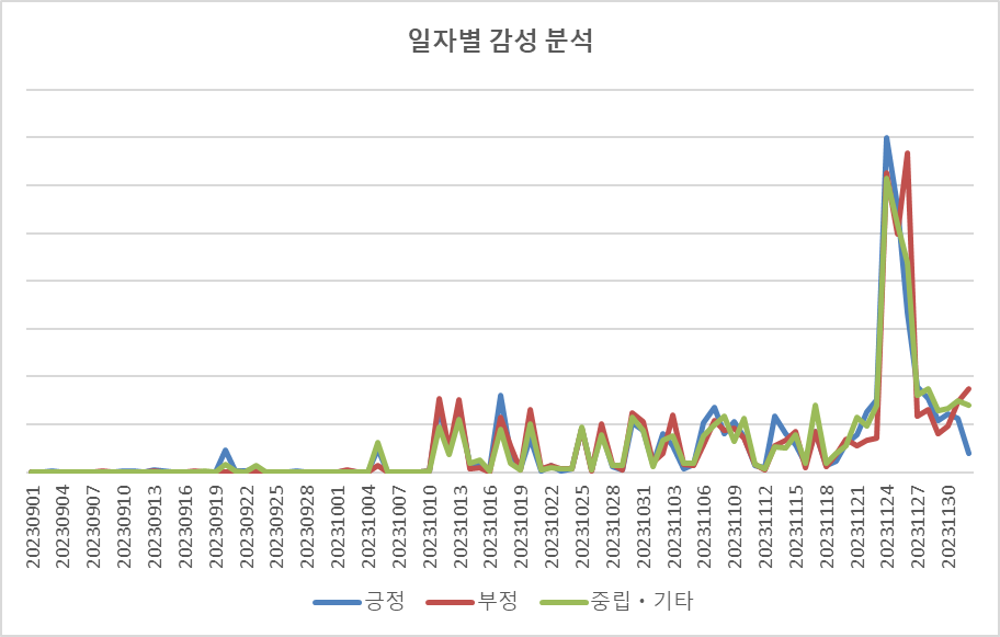 : 2023년 11월 24일부터 방송 중인 SBS 금토 드라마 인 "마이데몬" 의 기간 동안의 검색어 일자별 감성 분석을 확인해 결과