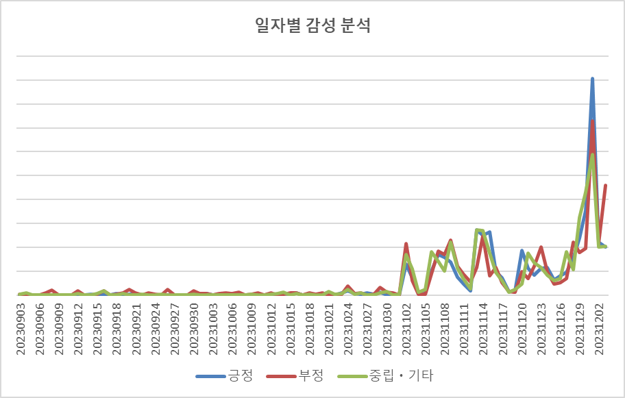 : 2023년 12월 2일부터 방송중인 JTBC 토일드라마인 "웰컴투 삼달리" 의 일자별 감성 분석을 확인해 결과