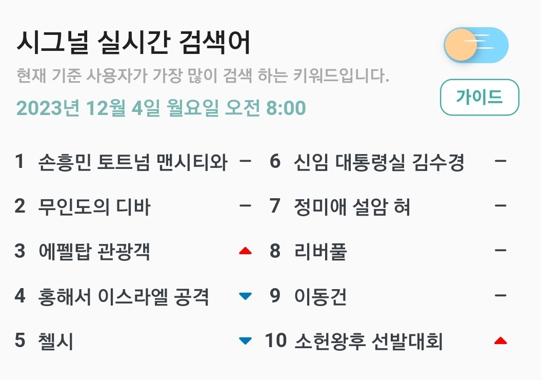 실시간 검색어를 확인 가능한 시그널 (https://signal.bz/)을 통해