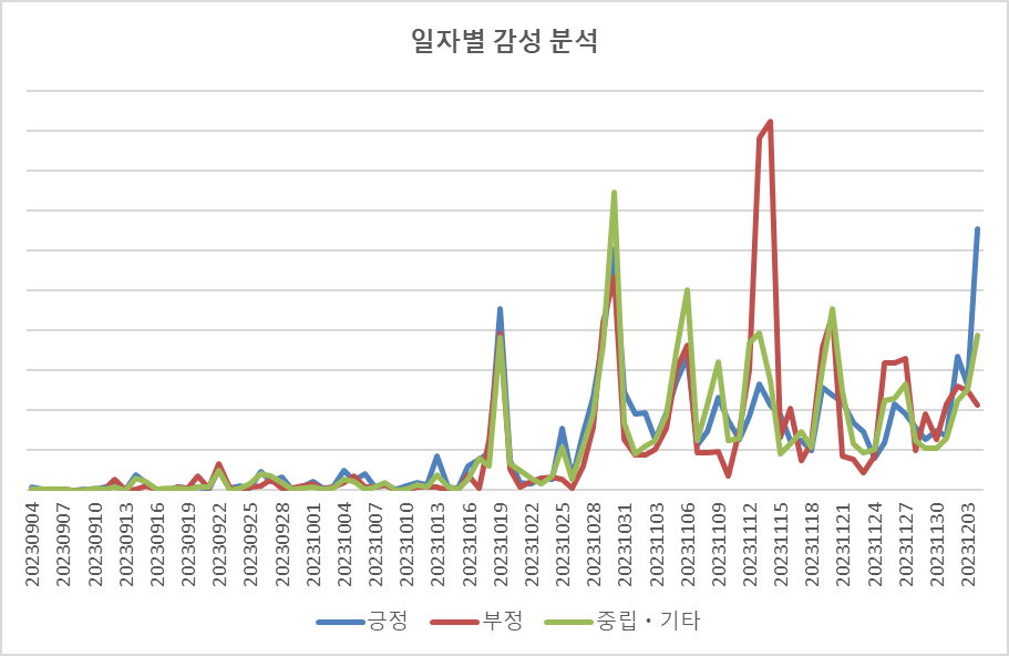 : 23년 10월 28일 ~ 12월 3일까지 방영된 tvN 토일 드라마 인 "무인도의 디바" 의 일자별 감성 분석을 확인해 결과