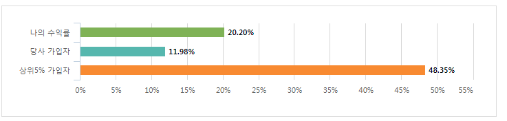 : 다만, 상위 5% 가입자의 수익율인 48.35% 에는 한참 모자란 수익율로 확인이 됩니다.