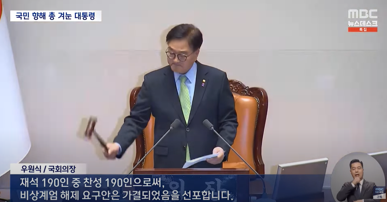| 1시 01분 | 비상계엄 해제결의안 가결 |