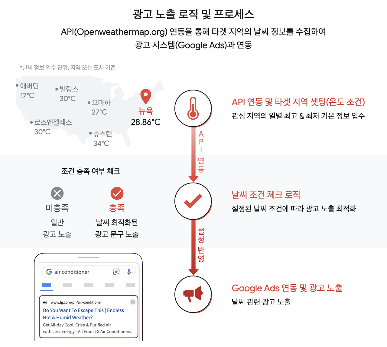 API 사용 예 : 기온이 30도 이상일 때 자동으로 냉방 제품 광고를 노출.