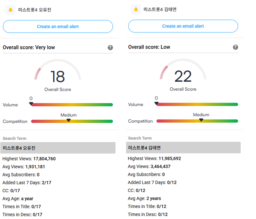 많은 분이 궁금해하시는 심사위원 점수 차이와 유튜브 실시간 화력을 분석해 드립니다.