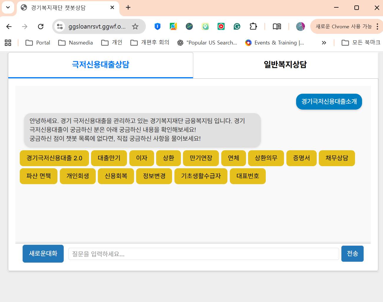신청 시 궁금한 부분에 있는 사항은 아래 "경기복지재단 챗봇상담" 을 눌러 확인해 보세요