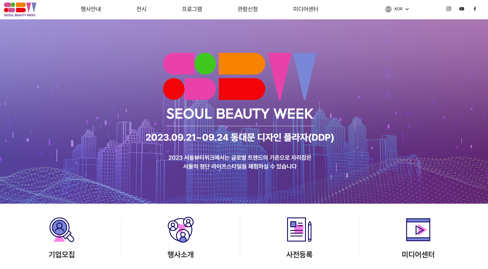 K-뷰티를 선도하는 대·중견기업과 유망 뷰티 중소 뷰티기업 100여개사가 참여하는 2023 서울뷰티위크가 21일부터 24일까지 동대문디자인플라자에서 열린다. 행사는 기업 전시, 전문가 강연(아모레퍼시픽, 로레알 그룹 등), 비즈니스 밋업 피칭대회 등 뷰티를 비롯해 테크·패션·리빙·푸드 등 최신 트렌드를 살펴볼 수 있도록 구성했다.