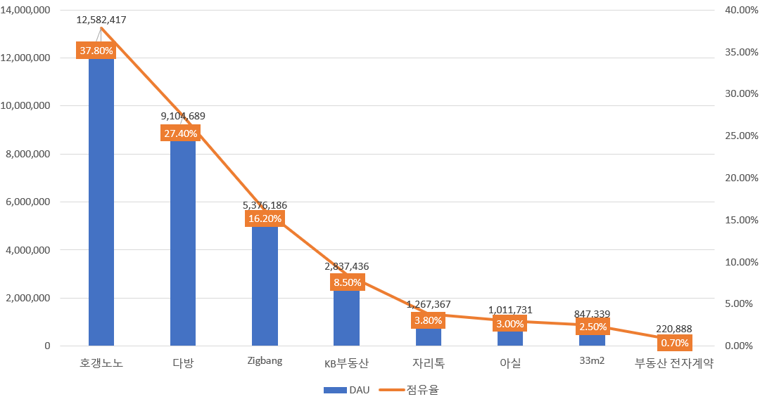 - 호갱노노 (37.8%), 다방 (27.4%), 직방 (16.2%)