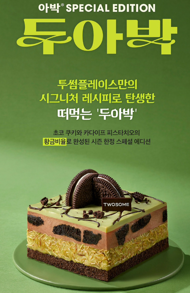 투썸은 기존 스테디셀러인 블랙 쿠키 기반의 아박에 피스타치오 가나슈와 볶은 카다이프를 접목해