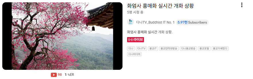 A. 화엄사 유튜브 실시간 (1번 참고) 을 통해 매일 아침 꽃 상태를 확인할 수 있습니다.